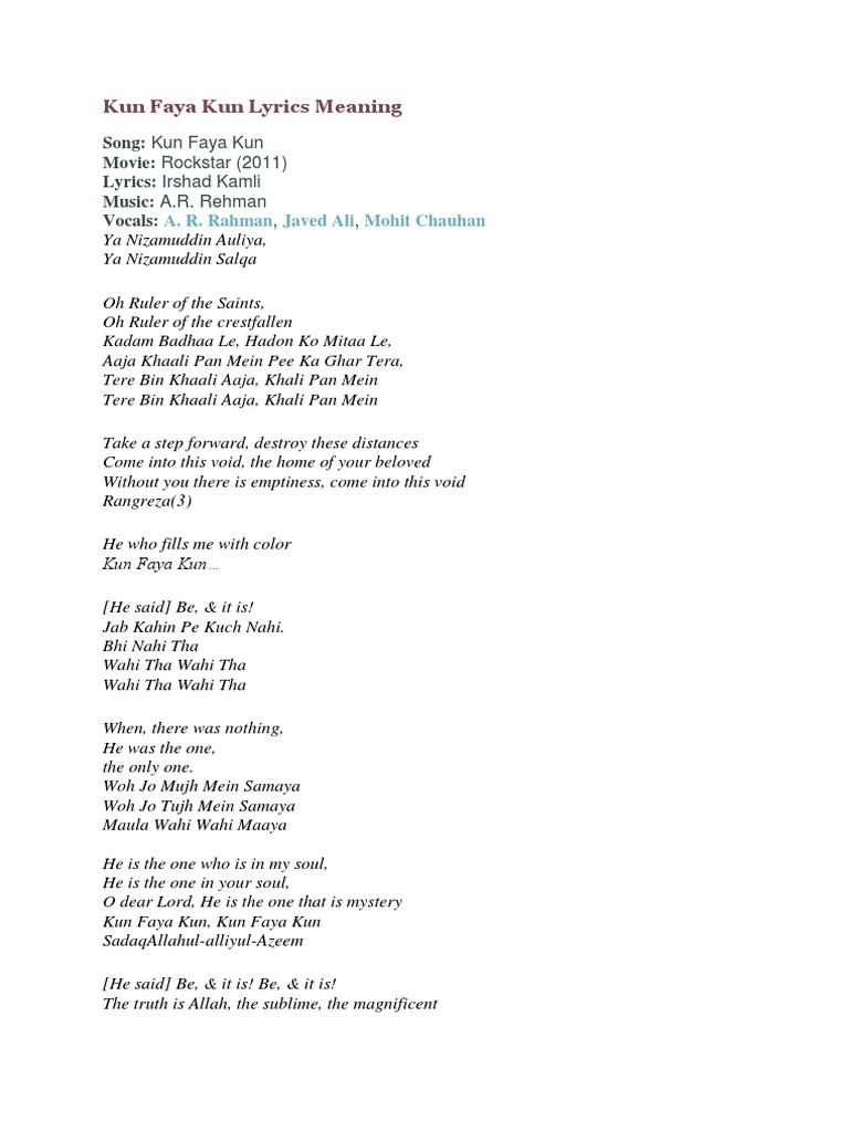 Kun Faya Kun Meaning In English With Lyrics Incidence - The details of mere maula karam ho karam song lyrics are given below: