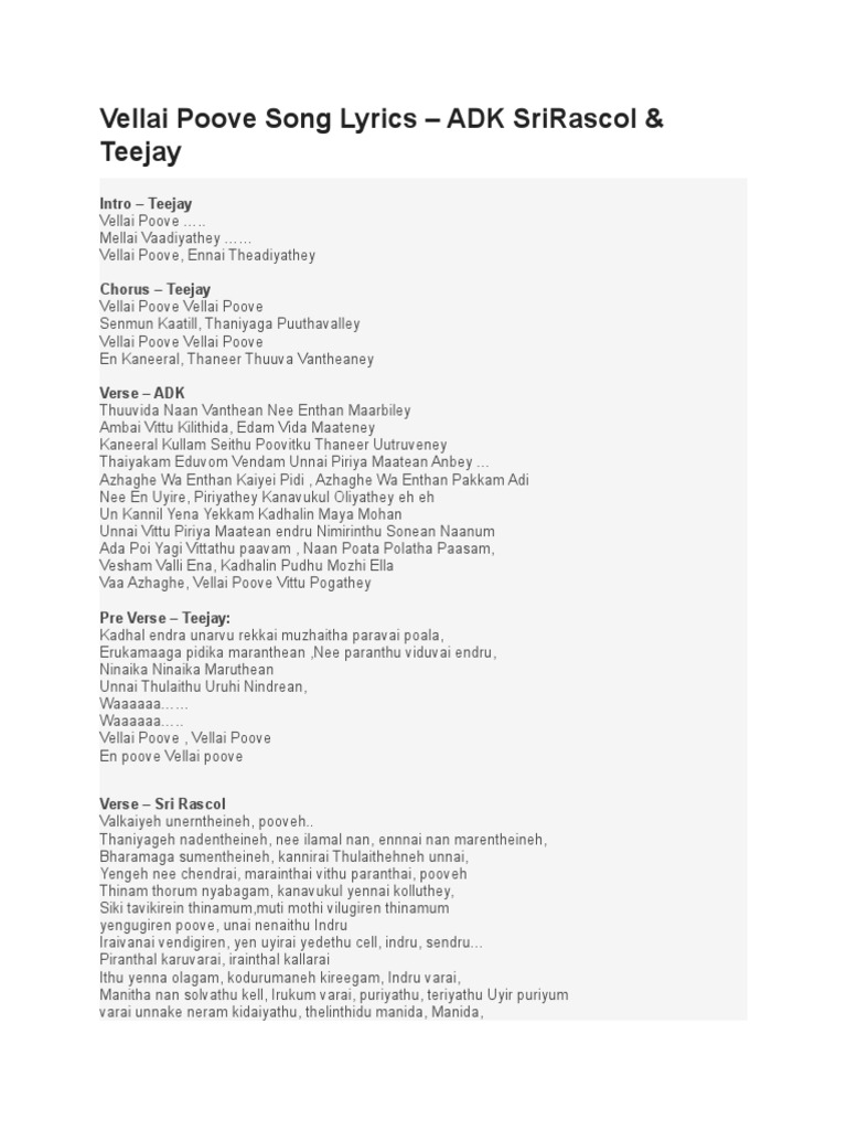 Sembaruthi Poove Song Lyrics / Prosmotrov 707 tys.3 goda nazad. Sembaruthi Poove Song Lyrics / I was always very loved as a kid, but my idea of love—and what it meant to fall in love—got skewed.