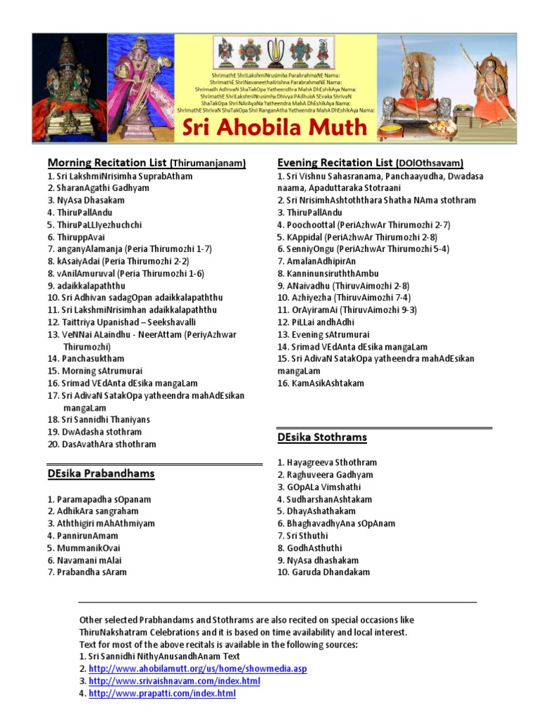 Ahobila Mutt Hindu Texts Eastern Philosophy - Slokas & mantras in tamil.